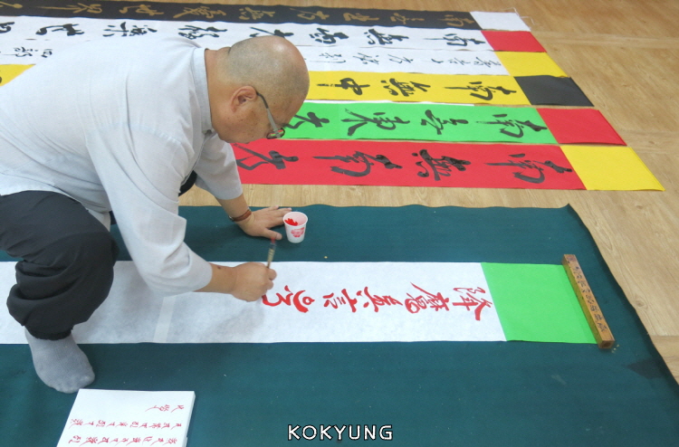 당일에 쓰고 태우는 종이 번 또한 정성껏 만든다. 근래에는 종이 장엄을 조성하는 스님이 드물어 대량 생산하는 번을 쓰기도 하지만, 큰절에는 여전히 필체 좋은 스님이 번을 비롯해 방榜과 소疏를 쓰는 경필經筆 소임을 맡고 있다. 예전에는 큰 재가 들면 경필 스님과 지화 만드는 스님들을 모시고, 트럭으로 한지를 들여와 대방에 펼쳐놓은 채 몇 달에 걸쳐 차근차근 모든 장엄을 직접 만들었다.