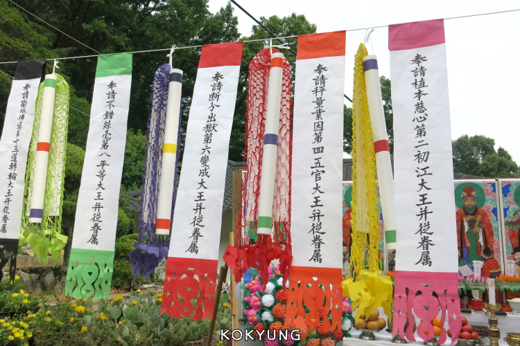 당개幢蓋를 만들어 산골에 이리저리 늘어놓고, 또 시왕十王의 화상을 설치하여 각각 전번牋幡을 두며, 한곳에 종이 100여 속束을 쌓아두었다가 법회를 행하는 저녁에 다 태워 버리고는 ‘소번재燒幡齋’라고 부릅니다.