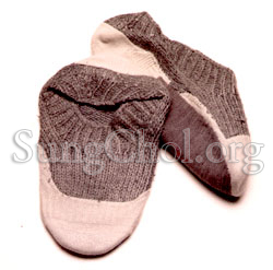 40여 년 동안 성철스님이 입어 온 누더기 두루마기와 깁고 기워 신은 덧버선 등