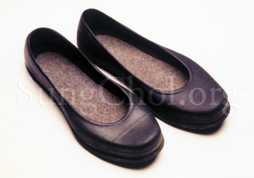 40여 년 동안 성철스님이 입어 온 누더기 두루마기와 깁고 기워 신은 덧버선 등