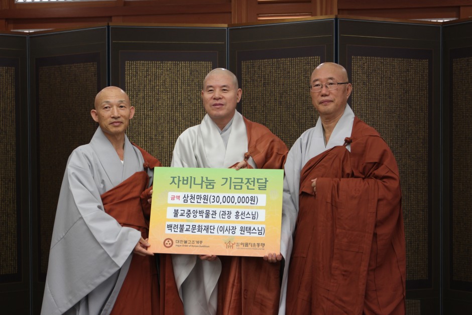 백련불교문화재단 이사장 원택스님이 금액을 보태어 총 3000만원의 자비나눔기금이