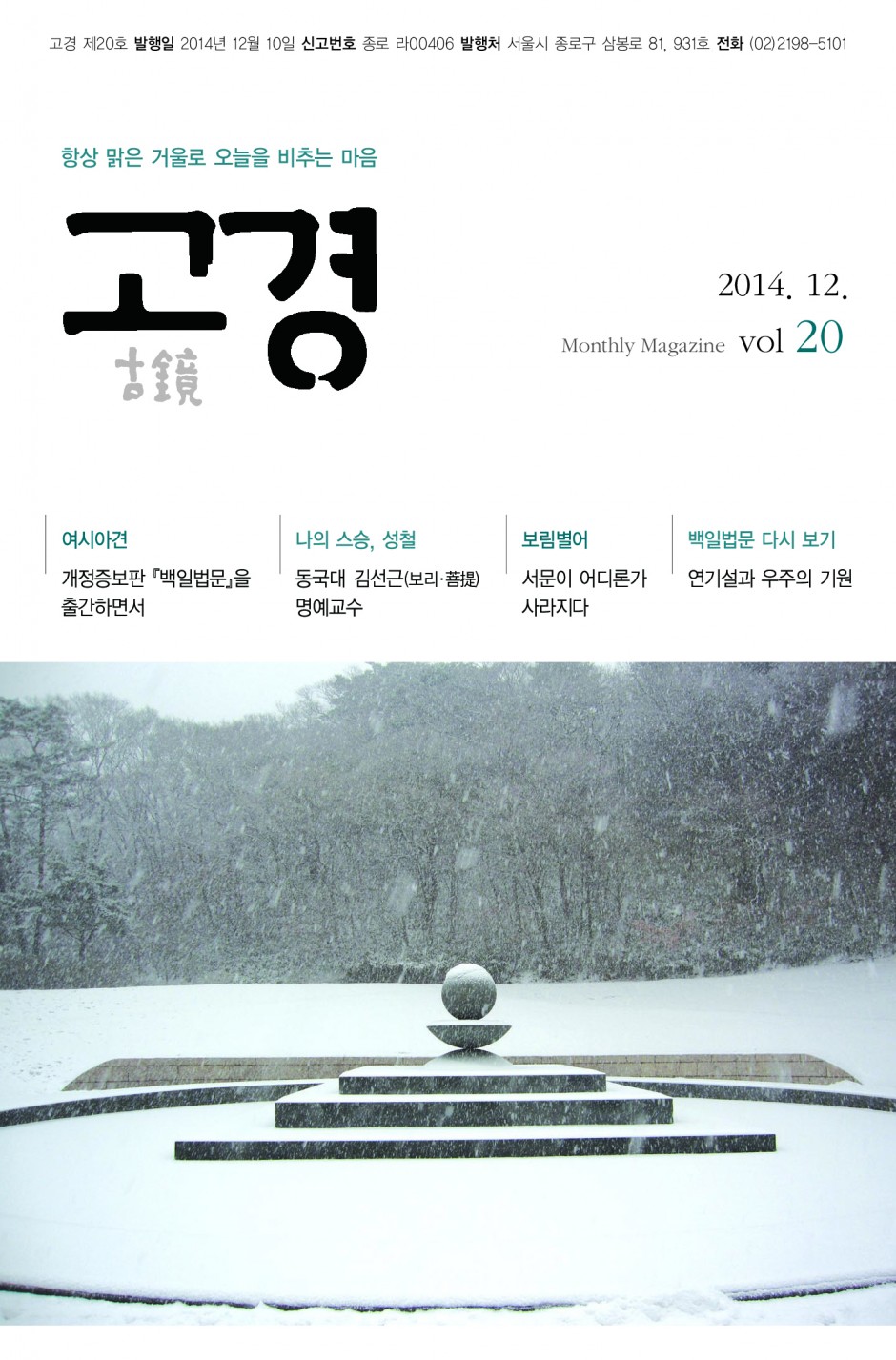 <고경> 12월호 발간^^ 페이지 정보 작성자 최고관리자 쪽지보내기 메일보내기 자기소개 아이디로 검색 전체게시물 쪽지보내기 메일보내기 자기소개 아이디로 검색 전체게시물 작성일14-11-28 11:03 조회30,188회 댓글0건 본문 내년에도 더 좋은 글로 여러분들을 찾아 뵙겠습니다.^^ 이전글 다음글 목록 댓글목록 등록된 댓글이 없습니다.